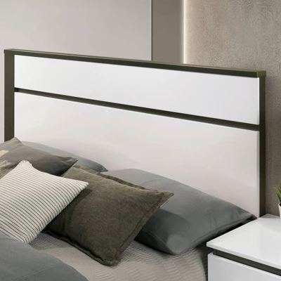 This visually striking, contemporary bedroom set boasts horizontal metallic gray lines set against crisp white panels in a lustrous high gloss finish for a bold, contrasting effect. An asymmetrical panel headboard shows off this two-tone design, creating clean lines with a hint of intrigue. Flush drawer fronts and concealed drawer pulls, along with built-in USB ports behind each nightstand, offer sleek touches and modern sensibilities. This frame is made from recycled lumber, which had its beggings on a rubber tree farm. To prevent the traditional waste of natural resources through burning, rubber trees are retired into furniture.