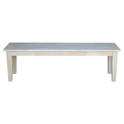 International Concepts home furniture is for those who appreciate high quality, wood furniture with a traditional and elegant look. This bench will beautifully complement any decor in your home. The bench is made of solid hardwood with a butcher block surface. It measures 60″W x 14″D x 18″H. It is unfinished, allowing you to match any decor. The bench ships ready to assemble.