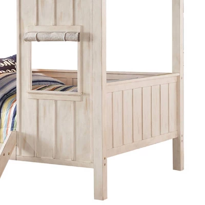 Take bed-time with this incredible Spring Cottage full size bed. This is a dream come true for children everywhere, the bed is sure to transform any room into the ultimate dreamland. The bed features washed gray roof top with weathered white finish throughout the whole house. The light brown curtains design is novel and fascinating. Indulge your children with this fabulous bed that will make it come alive and thrill them for years to come.