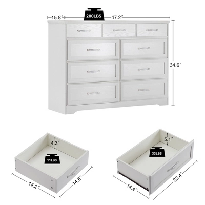 - 【Plenty of Storage】This 9-drawer dresser adds storage space to your home for clothing and extra throws or pillows.
