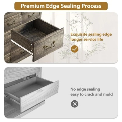 Organize your space with this elegant 9-drawer dresser, offering ample storage for clothes and essentials. Crafted from durable MDF with a tip-over prevention system for safety, it¡¯s perfect for homes with kids or pets. The timeless vintage design, intricate metal handles, and distinctive curved wooden legs add classic charm to any room. Easy to assemble with clear instructions and labeled parts, this dresser combines style, function, and peace of mind for your bedroom, living room, or hallway.