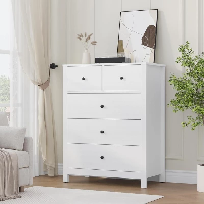 The Acekool 37″ Tall Dresser combines thoughtful organization with modern design. Five deep drawers and a spacious top keep daily items tidy. Its clean lines and versatile color options suit any home style. Add functional storage to bedrooms, hallways, or entry spaces with this sleek piece.