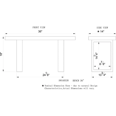 - Bench dimensions: 36″ W x 14″ D x 18″ H