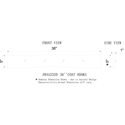 - Coat hook dimensions: 36″ W x 2″ D x 6″ H