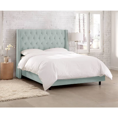 This bed brings contemporary sophistication to your bedroom. This beautiful button-tufted bed features an updated wingback design, accented with nailhead trim for a well-dressed look.