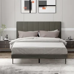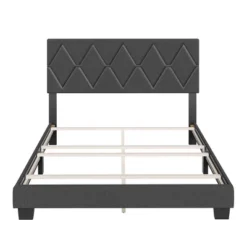 Costway Twin/Full/Queen Size Bed Frame With Button-Tufted Headboard & Wooden Slats Easy Assembly