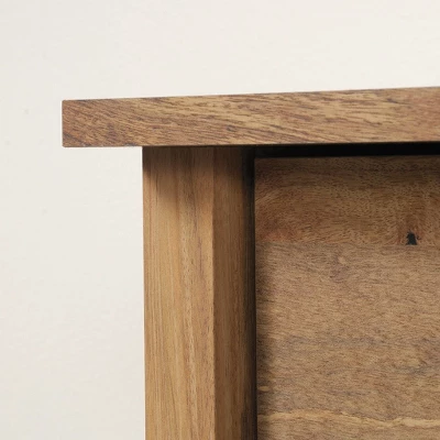 There is no such thing as having too much storage space, right? Right! Create versatile storage options while adding beautiful style and design to your bedroom with this 4-drawer chest from the Cannery Bridge collection. This dresser features four large drawers that open and close on smooth metal runners for easy access storage of a variety of different things like stacks of slacks and your favorite button-up shirts to big cozy sweaters and your collection of t-shirts. You can find room for all your things! Each drawer also includes safety stops for added safety for you and your family. This chest of drawers features a spacious top surface that makes an ideal place to store additional bedroom essentials and home décor items like bottles of cologne, an accent lamp, your makeup bag and photos of your family and friends. The side panels of this 4-drawer chest feature a unique herringbone pattern that adds an extra touch of detail to your bedroom. Finished in Sindoori Mango, this handsome chest is just what you’ve been looking for.