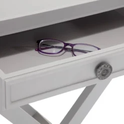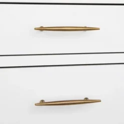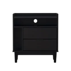 The Cassie Nightstand from Buylateral is a Mid-Century modern styled nightstand for your bedroom. Crafted of solid wood legs and smooth laminate white drawer fronts, this two-tone combination presents the perfect color story. Soft rounded edges accented with a flared leg frame complement the look of this retro inspired piece. Ideal for many bedroom decors, this night stand offers fashion and functionality.