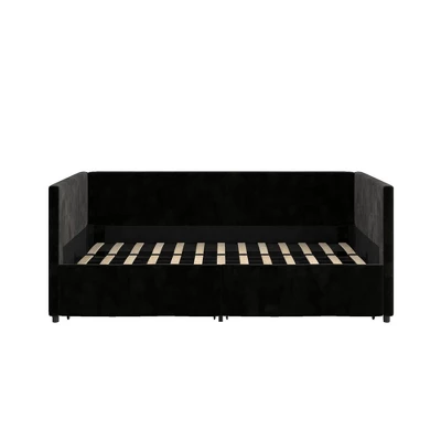 Sublime minimalism meets supreme comfort and functionality with the Room & Joy Cooper Urban Daybed with Storage. A classic design that embodies refined style, this daybed provides convenience and charm in any bedroom setting. Upholstered in clean linen, the cubical shape introduces forms and functions into the heart of your home with additional storage drawers underneath the bed to maximize ultimate in-space functionality. Use the drawers to store extra bedsheets, comforters, and magazines and simply roll in and out whenever needed. The Cooper is constructed in robust wood frame with premium wooden slats system, this allows air to flow freely beneath your mattress, keeping it fresher longer. No box spring is required, just top this daybed with your favorite mattress and simply sleep the night away. Get your creative juice flowing by adding some colorful cushions and duvets to turn this daybed into a lounging area. Designed to fit a twin mattress. Ideal for small space living, guest room, studio apartment or child’s room.