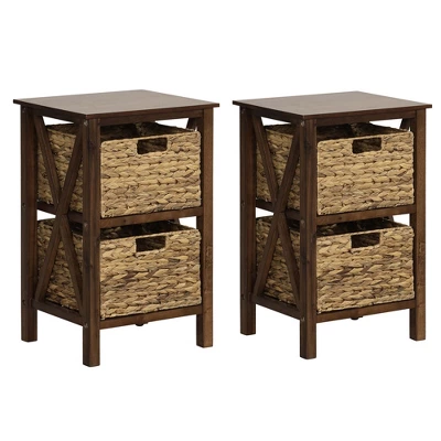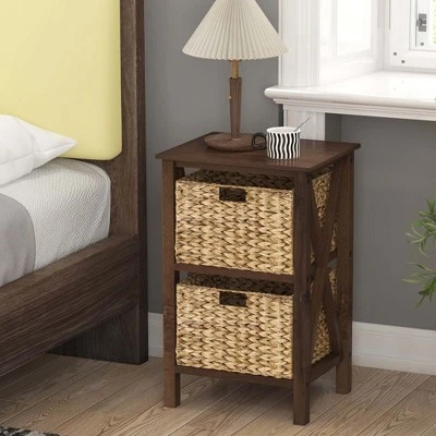 Enhance your space with the wobble-free side table. Stay organized with the easily accessible removable drawers. Crafted with solid acacia wood legs and reinforced rubber wood X-shaped frames, this end table ensures great durability. Embrace the natural charm of rustic seagrass baskets, creating a serene bedside ambiance that celebrates the beauty of nature. Its versatility allows you to use it next to your bed, in a guest room, or as a stylish addition to your living area or study. Moreover, the end table is painted for easy maintenance and only requires a simple installation. Elevate your space with this exceptional piece of furniture that combines style and functionality effortlessly.