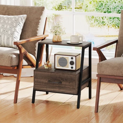 - User-friendly Design: The drawer is equipped with smooth metal slides for easy operation. A convenient handle allows for effortless opening and closure. With 4.5″ raised height from ground, the side table offers easy access for floor cleaning.