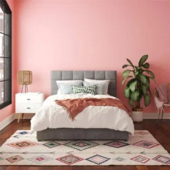CosmoLiving Elizabeth Upholstered Bed with Storage—coming in hot! It is designed with a #flawless profile that features square-tufted stitching and because adulting is hard it has four rollout drawers, so you can store all of your shoes and stuff. The sturdy wooden frame includes secured bentwood slats, so you can say goodbye to your old foundation and hello to a solid night’s sleep. The Elizabeth includes metal side rails and center metal legs to guarantee stability and durability for all of your evening activities and it is upholstered with velvet that is drippin’ in finesse. Add on the CosmoLiving Reign mattress for a match made in bed heaven!