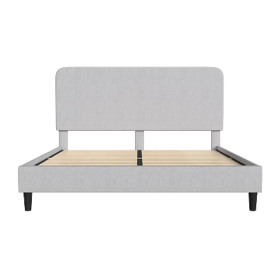 Every good day starts with a good night’s sleep which starts with a comfortable bed. This fabric upholstered platform bed will give you style and comfort in one beautiful package. Featuring a minimalistic design with a curved, slim panel headboard, this bed will add appeal without taking up much space visually to help keep your bedroom feeling open and light. The wooden support slat system with an iron middle support leg eliminates the need for cumbersome box springs or foundations. Simply add your current mattress or pair with one of our Capri Comfortable Sleep hybrid mattresses in a box to rejuvenate your sleep space. The lack of a raised footboard means making your bed will be less of a hassle and the sleek, neutral design gives you the freedom to choose bedding that suits your style and personality without having to worry about clashing colors or patterns. Additional Features: Assembles in 60 Minutes or Less, Wipes Clean with a Damp Cloth, Pair with a Capri Comfortable Sleep Hybrid Mattress in a Box