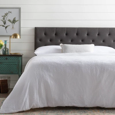 Create a chic modern look for your bedroom with our Brookside Emmie headboard. With seven different adjustable height options between 34 and 46 inches, this headboard can complement any decor. Built with sturdy and sustainable Siberian Larch wood and finished with a durable linen-inspired fabric, this headboard is the epitome of class and function. Buttonless diamond tufting finishes the elegant look of this headboard, while a hidden back compartment provides all the necessary hardware to attach it to any bed base, frame, or even the wall. Available in four beautiful and neutral colors, this headboard is truly the way to make all your decorating dreams come true.