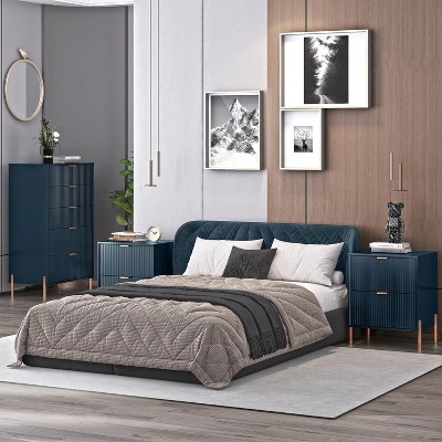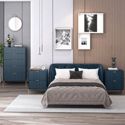 Festivo 3pc Modern Elegance 2 Drawer Nightstands And 5 Drawer Chest Set Navy