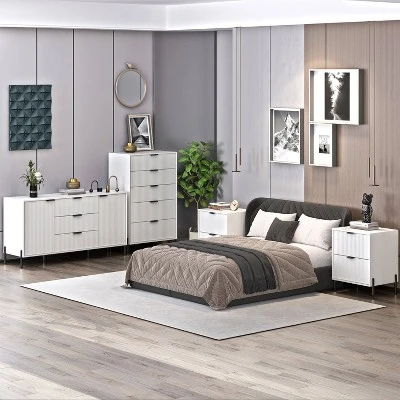 Elevate your bedroom with our versatile furniture collection, designed to seamlessly blend into various decor styles. This comprehensive bedroom set includes a mix of dressers and nightstands, offering ample storage and stylish functionality. With clean lines and a modern design, each piece adds a cohesive and sophisticated look to your bedroom, meeting all your organization needs. Transform your space with this elegant and practical bedroom set.