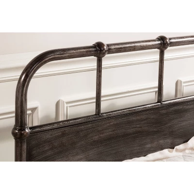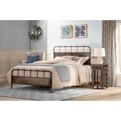 Utilitarian chic and sleek, the cool Queen size Bed by Hillsdale Furniture gives a major style overhaul to the traditional metal bed frame. Constructed of metal in a rubbed black finish, the Grayson Bed shines with its earthy, natural finish and linear accents. Do yourself a favor and check out this amazing piece of bedroom furniture. 550 weight limit including mattress. Mattress and box spring required. Assembly required.