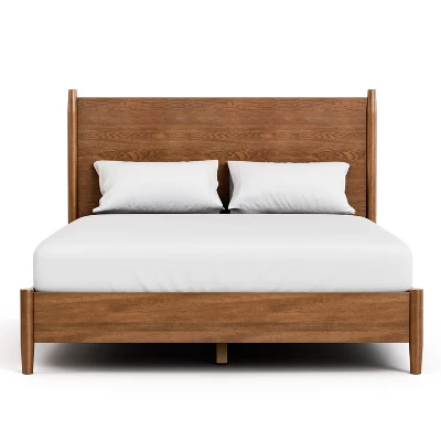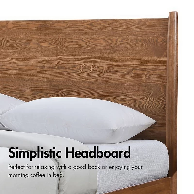 Introducing a mid-century modern 3-piece bedroom set that radiates timeless elegance and functional design. This exquisite collection features a stylish platform bed and 2-matching nightstands, crafted to infuse warmth and sophistication into your bedroom. At the heart of this set lies the stunning platform bed, adorned with a rich walnut finish that beautifully highlights the natural grain of the wood. The headboard serves as a striking focal point, boasting clean lines and a minimalist silhouette that seamlessly complements various interior styles. Crafted from high-quality materials, the sturdy platform frame ensures durability and stability, providing a solid foundation for a restful night’s sleep. The bed’s modern design eliminates the need for a box spring, making it a practical and sleek choice for contemporary living. Accompanying the bed are 2-matching nightstands, each reflecting the same rich walnut finish. These nightstands are designed with clean lines and splayed legs that add a touch of retro flair. Each nightstand features 2-spacious drawers, adorned with sleek brass handles that enhance their vintage appeal. The drawers glide smoothly on metal runners, offering effortless access to your bedside essentials. Whether it’s books, reading glasses, or nighttime skincare products, these drawers provide ample storage to keep your bedroom organized and clutter-free.