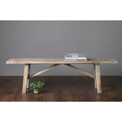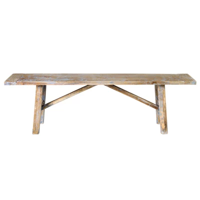 A rustic seating option for any style, this bench comfortably seats 3 people. At home under a window, in your dining room ensemble, or by the bed, this handmade bench is sure to bring a natural feel. With subtle brown, and gray paint and vintage style, this bench is sure to provide warmth and uniqueness to any room.
