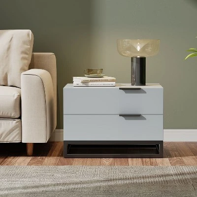 - 【VERSATILE NIGHTSTAND】The gray night stand featurs concise appearance, ideal as a end table in the bedroom, hallway, living room, etc and will be practical for you to use as a storage table, side table, bedside table, etc
