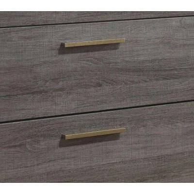 - Smooth Gliding Drawers: The two spacious drawers feature center metal tracks and brass pulls, providing 25lbs of storage capacity each in this modern nightstand while ensuring effortless operation.
