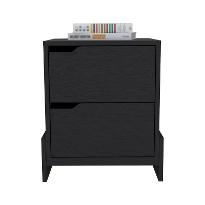 This functional wooden nightstand features two spacious drawers and a sturdy base, providing reliable storage in a compact 14.57″L x 17.01″W footprint. The night stand with drawers stands 19.92″ tall, offering the perfect height for easy access to bedside essentials in your bedroom furniture.