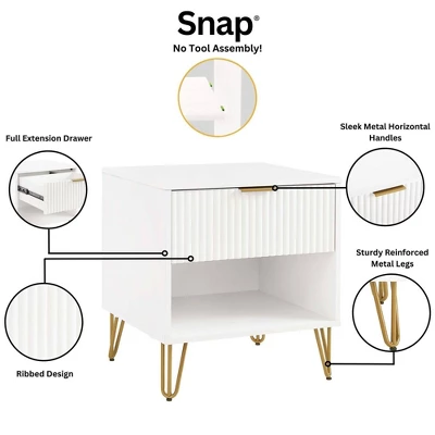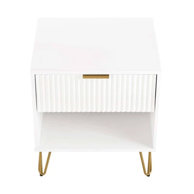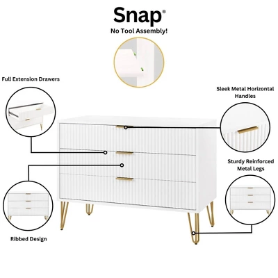 The Manhattan Comfort DUMBO Collection brings tasteful modern glam to your home! With its unique vertical ribbed drawer front, full extension and soft close drawers, and stylish splayed metal legs, the collection is not only a true beauty but also made with quality! Stunning variety of colors with sleek metal horizontal handles. DUMBO is what you have been looking for all this time! Make your house a home with the DUMBO Collection.