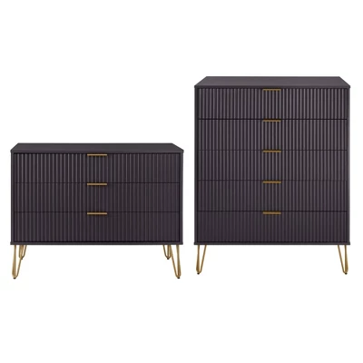 The Manhattan Comfort DUMBO Collection brings tasteful modern glam to your home! With its unique vertical ribbed drawer front, full extension and soft close drawers, and stylish splayed metal legs, the collection is not only a true beauty but also made with quality! Stunning variety of colors with sleek metal horizontal handles. DUMBO is what you have been looking for all this time! Make your house a home with the DUMBO Collection.