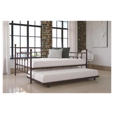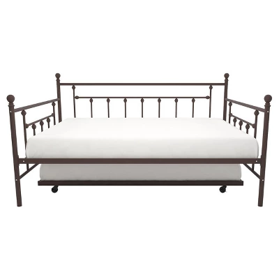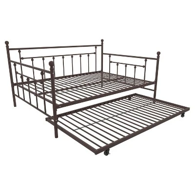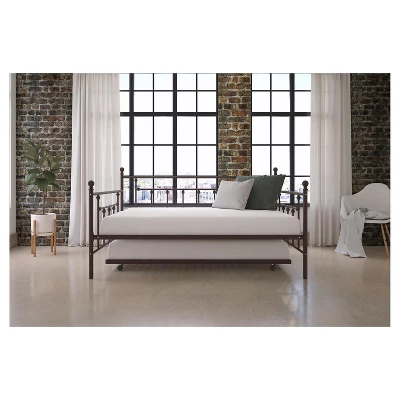 If you need extra sleeping space, then the Room & Joy Milan daybed with trundle is perfect for your home! The Victorian design with rounded finials gives a spark of style that’s both modern and timeless for any room. The clean, exquisite and sturdy metal frame comes with metal slats for extra support that also ensure air moves freely around your mattress to keep it fresh for years to come. The Milan bed can be used by your kids to read, play and sit back during the day and sleep soundly when it’s time to sleep. For overnight guests, just pull out the trundle, which is mounted on four easy-glide casters. All you need are some pillows and throw blankets for color, and you’re all set!