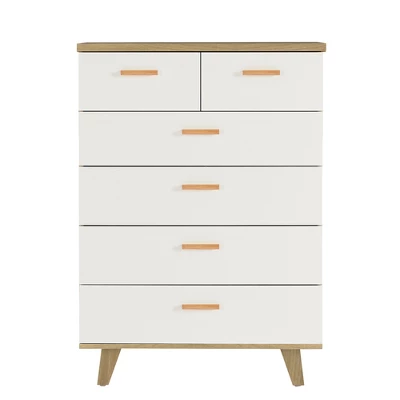 This dresser is designed with 6 drawers, including 2 small drawers and 4 large drawers, which makes the whole cabinet more beautiful and can fully meet your daily storage needs. With a solid solid wood frame, it is very durable and can accompany you for a long time. The combination of oak and white is simple and high-end, which can be perfectly matched with any decoration style.