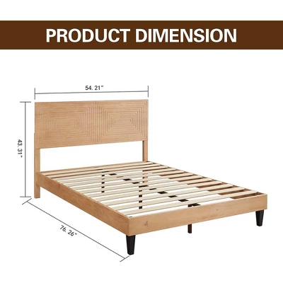 - FULL BED FRAME: Full-size platform bed frame adds a dash of transitional appeal to your bedroom decor; Dimensions: (L x W x H): 76.26 x 54.21 x 12 inches; Weight: 61 pounds