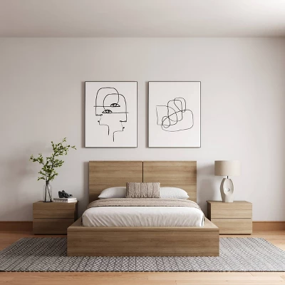 Elevate your bedroom with modern sophistication and minimalist design. This 4-Piece bedroom set features a sleek platform bed with an elegant headboard, along with two functional 2-Drawer Nightstand. The extra-wide bedside surfaces provide both style and convenience, ideal for your books or charging devices.