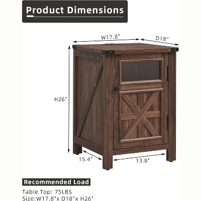 - Nightstand Dimensions: 18″D x 18″W x 26″H