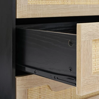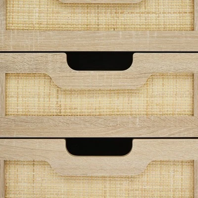 - 【 Stylish Bohemian Rattan Nightstand】This nightstand elegantly blends modern design with boho charm featuring three natural rattan front drawers. The spacious top surface accommodates bedside essentials like lamps, books, and coffee, while its organic texture adds a warm and inviting touch to any bedroom or living area décor. Perfect for those seeking functional yet stylish furniture