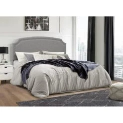 Revel in relaxation with the Preston Headboard. The camelback shape of the headboard is highlighted with an antique nickel nailhead trim and has a sturdy frame construction. Choose charcoal, navy, or shadow gray colored linen upholstery. Easy to assemble, with a sturdy frame. Available in king, queen, and full sizes. Mattress, box spring and bedding not included.