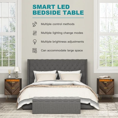 - 【Large Capacity Space】 The led nightstand provides spacious storage for nighttime essentials. There is a swivel desk; Open storage shelves; 2 drawers,The desktop can hold everyday items and keep them within reach