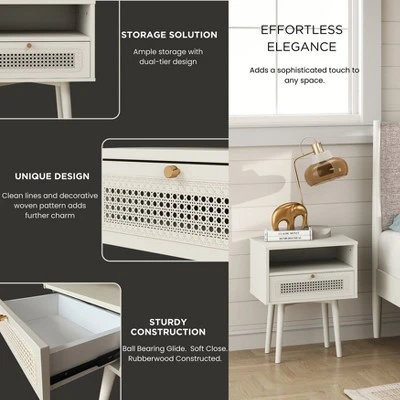 - [ATTRACTIVE NIGHTSTAND]: The matching nightstand boasts a unique design with a decorative woven pattern, making it a charming and practical addition to any room. It is expertly crafted with rubberwood and MDF for extra durability. The dual tiers are designed to maintain style and practicality.