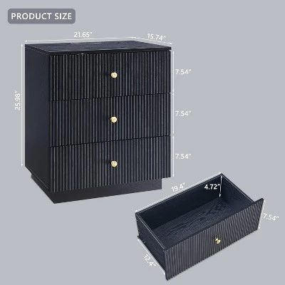 The product measures 15.74″deep x 21.65″ wide x 25.98″high. This bedside table is perfectly suitable for most bed frames, combining space-saving efficiency with spacious storage capacity. Its unique wavy pattern design infuses your bedroom with a modern artistic touch, while the smooth flat ceiling provides ample space for lamps, books or decorative items – seamlessly blending style and practicality.