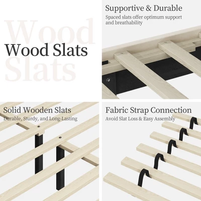 - Sturdy Construction: With an interior wooden framework, 8 solid support legs, 12 durable slats, and a dense foam-padded border, this upholstered bed frame offers enhanced comfort and long-lasting durability, supporting up to 800 lb for a restful night’s sleep